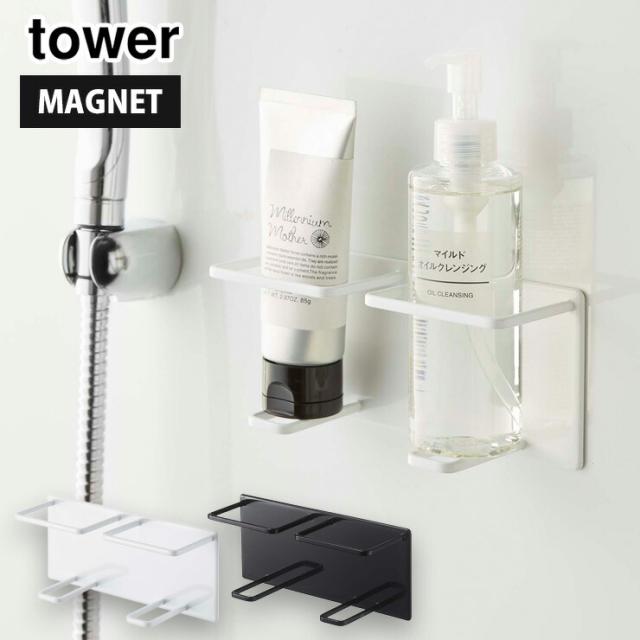 山崎実業 タワー マグネットバスルームチューブ&ボトルホルダー M ダブル ホワイト 5506 ブラック 5507 yamazaki tower【チューブホルダー 壁掛け 壁面収納/バス お風呂 浴室収納 マグネット 磁石/タワーシリーズ】