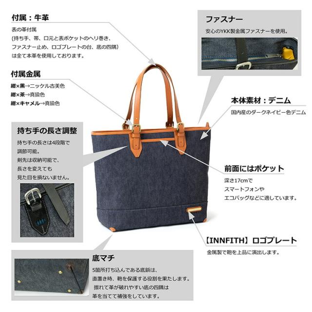 INNFITH インフィス 日本製 レザーバッグ トートバッグ メンズ レディース ユニセックス 岡山デニム ビジネス カジュアル 本革使用 バッグ レジャーシート付 ブラック ブラウン キャメル nz-55731