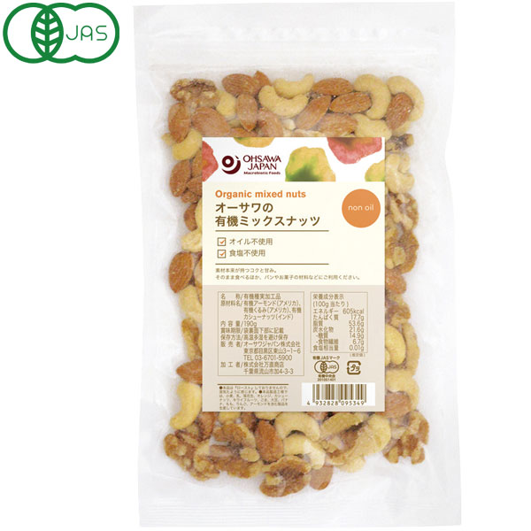 オーサワの有機ミックスナッツ(190g)【オーサワジャパン】