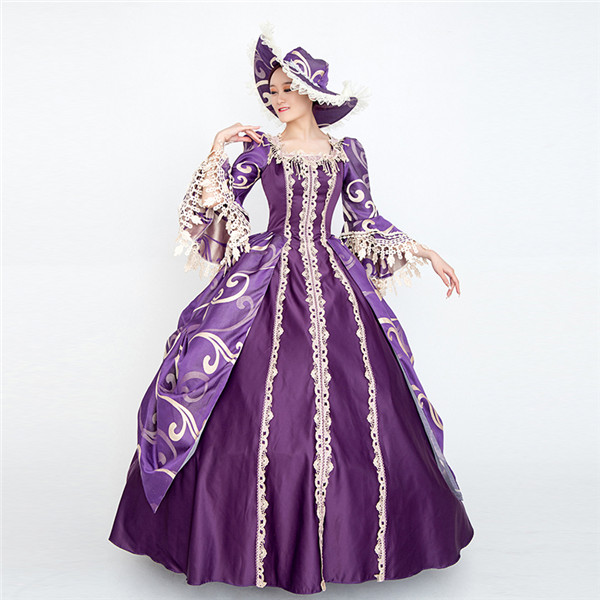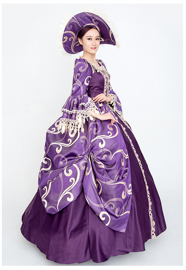 【送料無料】ロココ舞台服 ステージ衣装 演劇 ロング ドレス 学園祭 文化祭 舞踏会 宮廷服ドレス すみれ オペラ声楽 ハロウィン 中世貴族風 豪華お姫様ドレス S M L XL