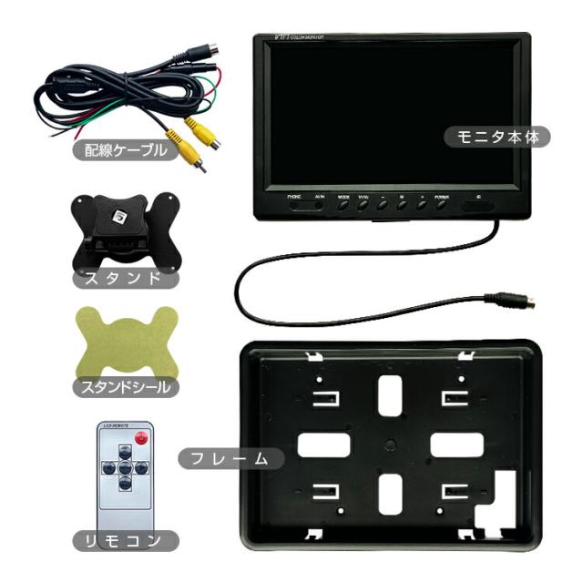 セット内容:モニタ本体、フレーム、配線ケーブル、スタンド、スタンド用粘着シール、リモコン