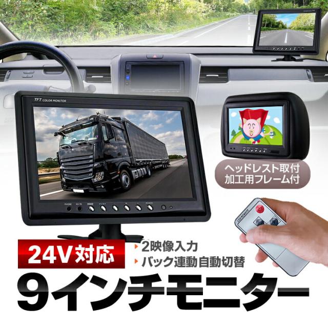 ボタン式 9インチモニター 24V/12V対応 映像2系統入力 リモコン付属 バック連動 自動表示切替 OMT90NEW