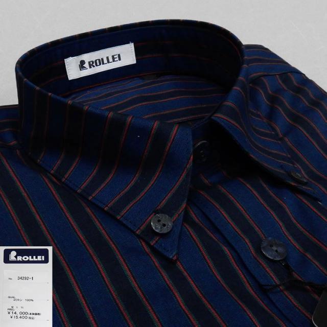 アダルトカジュアルシャツ [ROLLEI] 日本製 長袖 紺系 ストライプ 綿100% デザインシャツ ROL34292-1