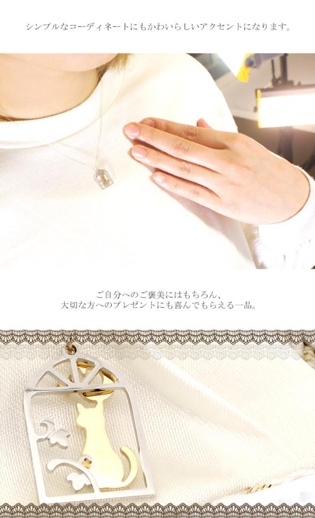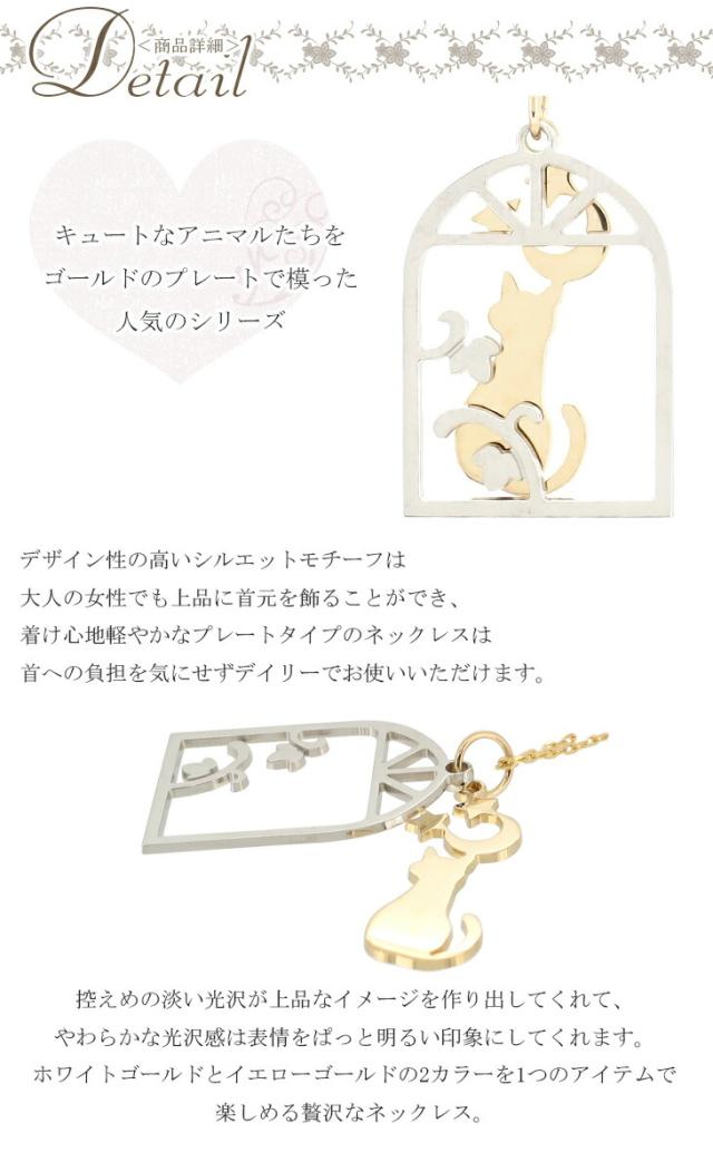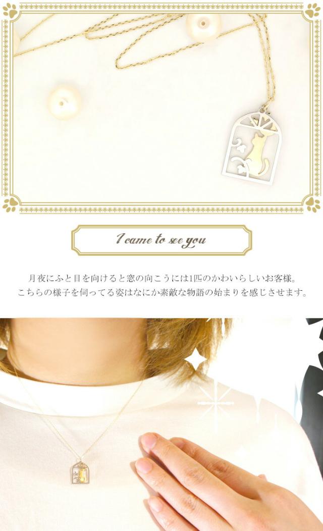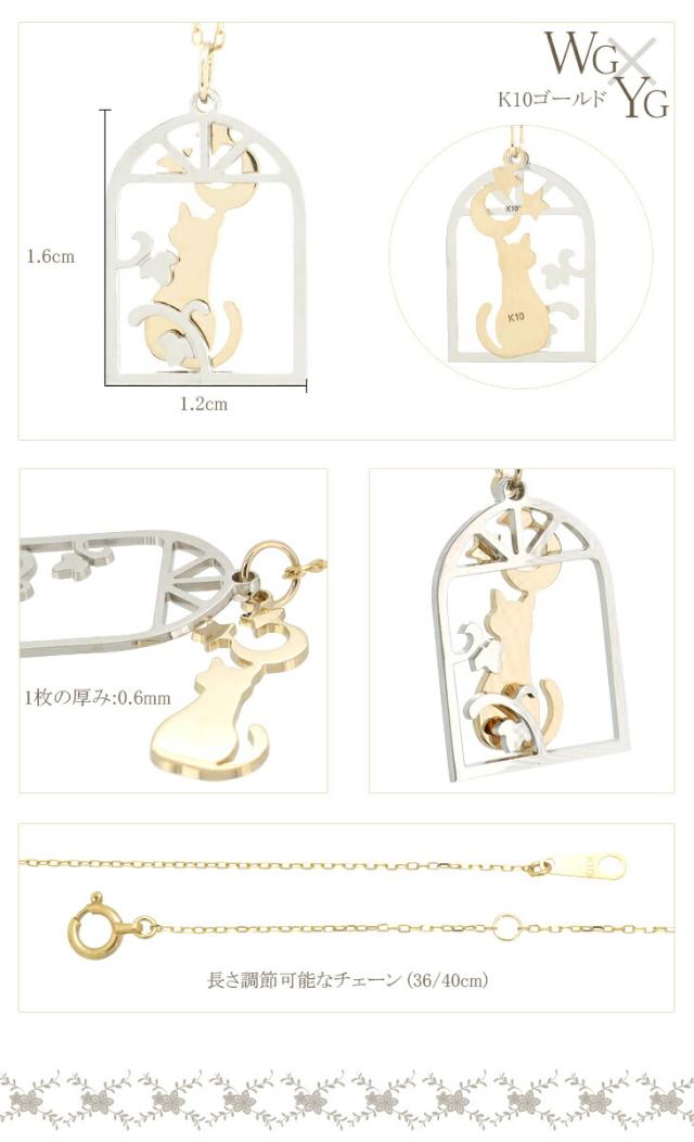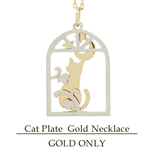 K10 10金 イエロー ホワイト YG WG ネックレス かわいい 動物 プレート ネコ シルエット 猫 ねこ プレゼント 三日月 花 草 たたずむ 窓