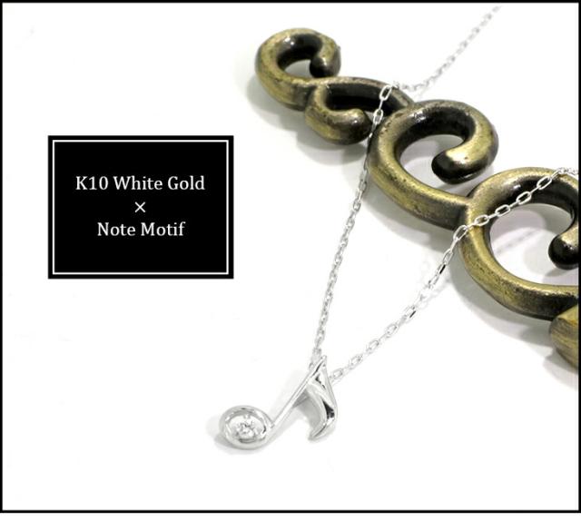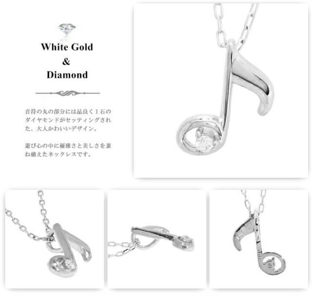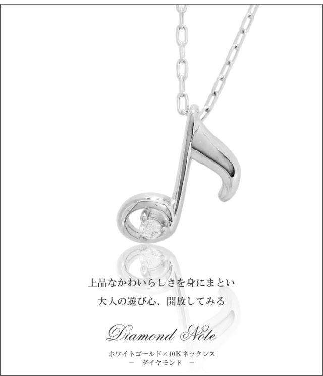 K10 WG ダイヤモンド 音符 ネックレス トーン 楽譜 譜面 ピアノ 音楽 10金 10k k10 ホワイトゴールド レディース 女性用 ペンダント プレゼント 人気