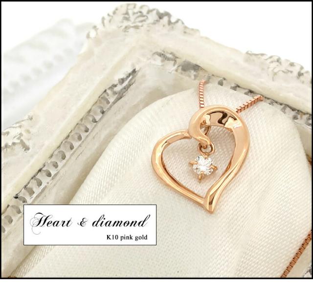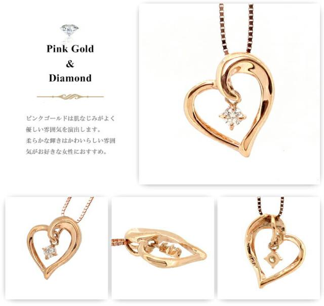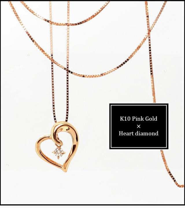 ハート ダイヤモンド ピンクゴールド ネックレス はーと レディース ゴールドアクセサリー 女性 K10 プレゼント 誕生日 記念日 ジュエリー 人気 彼女