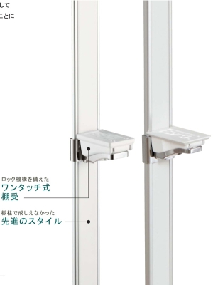 ワンタッチ式でスピーディーに棚板の高さ調整が行なえます。