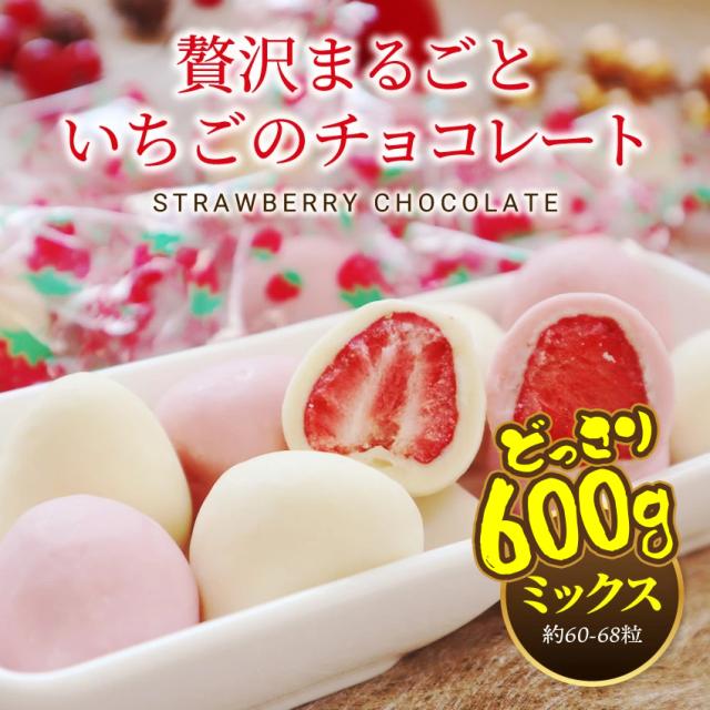 \たっぷり600g/ チョコ ちょこ 贅沢まるごと 苺ピンクチョコ×ホワイトチョコ どっさり600g(150g×4袋 / 約60粒〜68粒前後)冷凍宅急便 いちごチョコ チョコ 個包装 お配りに便利な個包装 送料無料 お菓子 プチギフト