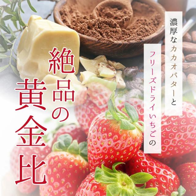 チョコレート(砂糖、ココアバター、全粉乳、植物油脂、乳糖)、乾燥苺、食用植物油脂/乳化剤、香料(一部に乳成分・大豆を含む)