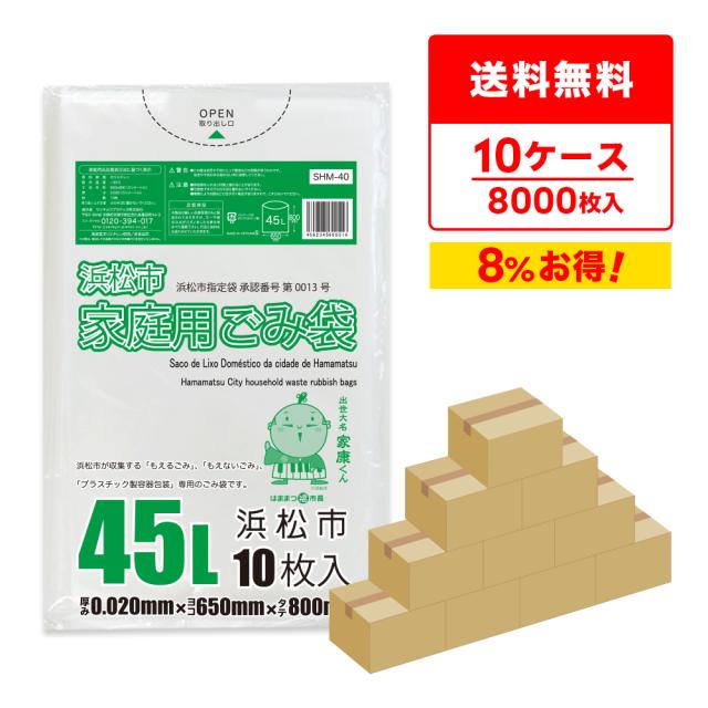 【まとめて10ケース】SHM-40-10 浜松市指定家庭用ごみ袋 45リットル 0.020mm厚 半透明 10枚x80冊x10箱/ ゴミ袋 ごみ袋 送料無料