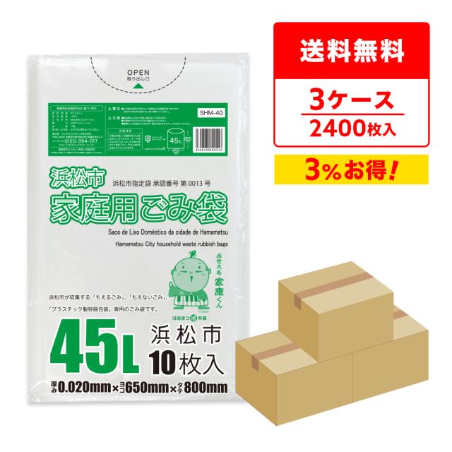【まとめて3ケース】SHM-40-3 浜松市指定家庭用ごみ袋 45リットル 0.020mm厚 半透明 10枚x80冊x3箱/ ゴミ袋 ごみ袋 送料無料