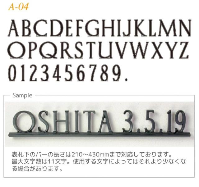 表札下部のバーの長さ/210〜430mmまで対応