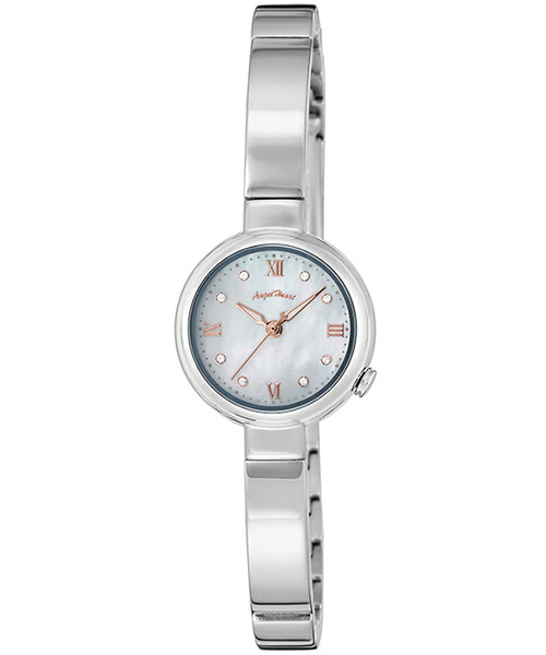 バングル仕様でありながら、サイズ調整も可能と実用性に富んでいます。23mmと華奢で丸みを帯びたデザインにローマ数字のインデックスがアンティーク感を演出します。リューズを平たく4時位置に配置することでよりアクセサリー感がアップ。傷つきにくいサファイアガラスを使用。デザイン性でだけでなく、機能面も考えられています。文字盤の天然パールは光の当たり具体で七色に輝き、様々な表情を楽しめます。