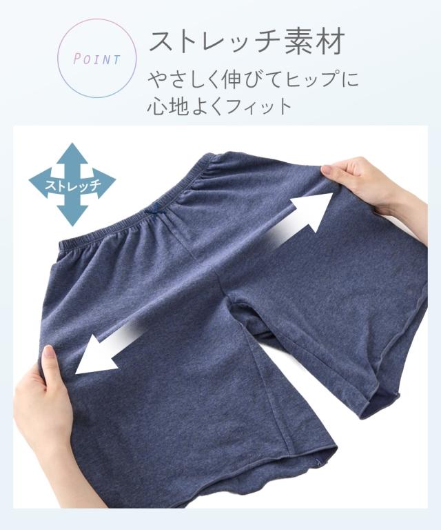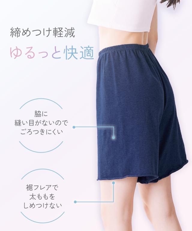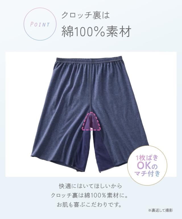 - 肥満体型のため、夏は股ズレ予防でショーツにペチパンツの2枚履きでしたが… あまりの暑さに汗かぶれまでできてしまいました。 通気の良いものをと、メンズのトランクスを試しましたが、なんだか股にくい込んで不快。 こちらの商品は女性用なので、くい込むこともなく、丈も長めで股ズレ予防もバッチリです。 2枚履きの必要もなくなったので、汗かぶれも治りました。