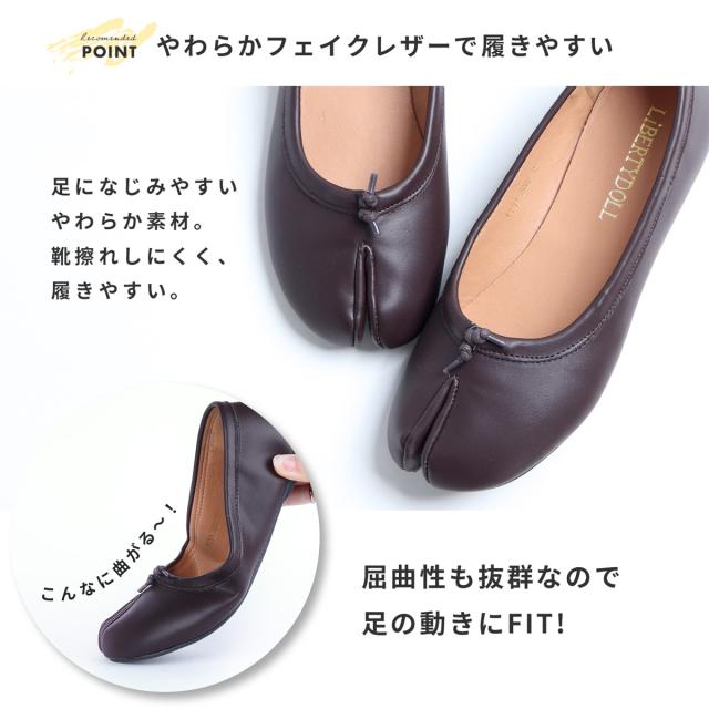 足袋 パンプス バレエシューズ 足袋バレエ レディース ローヒール フラットシューズ レザー 合成皮革 2E スエード 黒 ブラック ブラウン No.1131 22.5〜25.5cm LiBERTYDOLL リバティードール