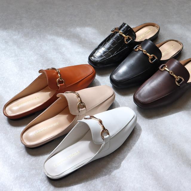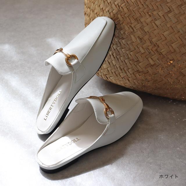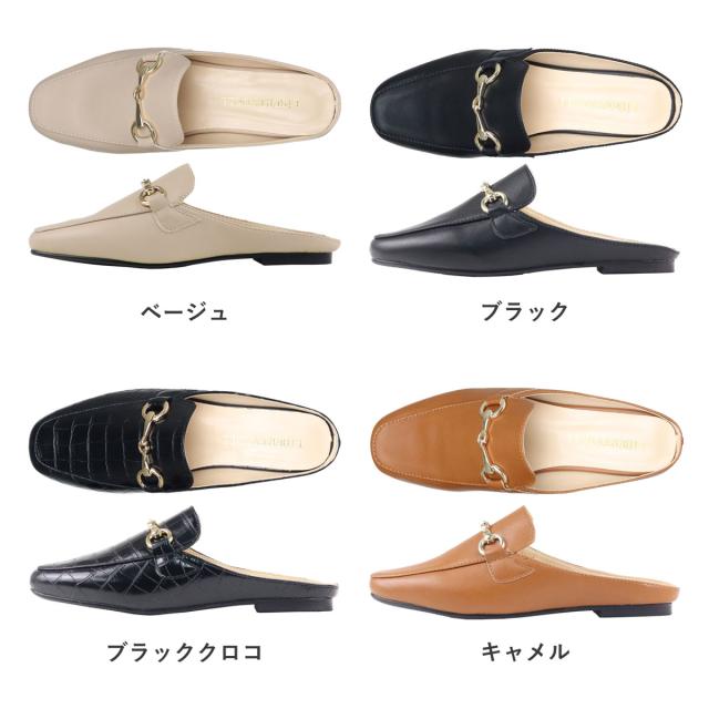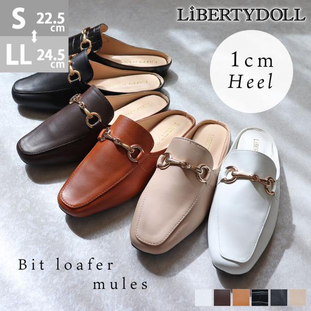 ローファー レディース ローヒール ビット かかとなし さっと履ける 歩きやすい 1cmヒール No.1134 22.5-24.5cm 黒 ブラック LiBERTYDOLL リバティードール ぺたんこ スクエアトゥ ミュール パンプス 秋 つっかけ フラットシューズ おしゃれ 社内履き
