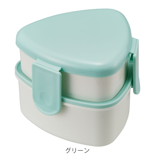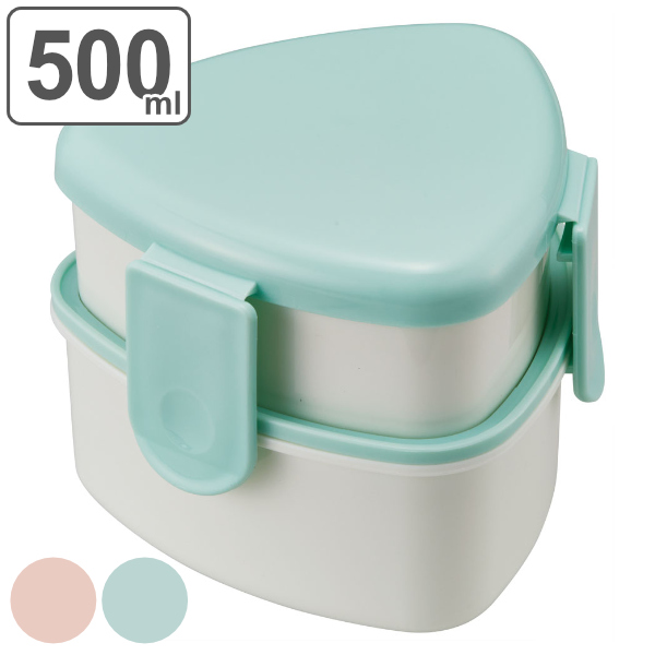 お弁当箱 2段 500ml おりぎり用 フォーク付き パウダーパステル ( レンジ対応 弁当箱 ランチボックス 二段 三角 レンジOK おむすび おにぎり 弁当 お弁当 日本製 )
