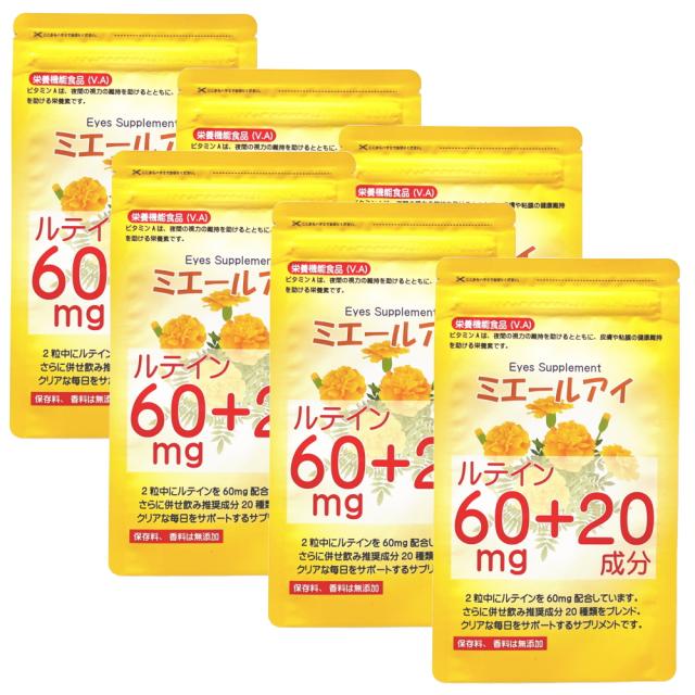 ●ルテイン サプリ「ミエールアイ」は1粒に30mg、1日量60mgものルテイン(フリー体)を高含有。