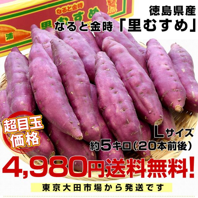 徳島県産 JA里浦 なると金時「里むすめ」 Lサイズ5キロ 20本前後 送料無料 きんとき さつまいも サツマイモ 薩摩芋 新芋 高系14号 市場発送 【発送時期:カート内に記載しております】
