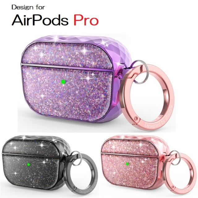 AhaStyle AirPods Pro用 保護ケース 硬質TPU 保護カバー 耐衝撃 紛失防止 保護ケース エアポッズ カラビナ フック付 カラフル トゥインクル グリッター柄 3色
