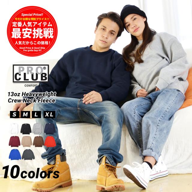 PRO CLUB プロクラブ トレーナー スウェット 裏起毛 ヘビーウェイト 厚手 13オンス メンズ レディース 大きめ ゆったり 無地 ブランド S M L XL #141