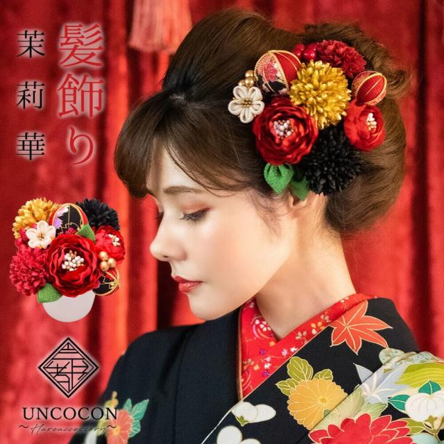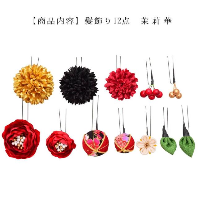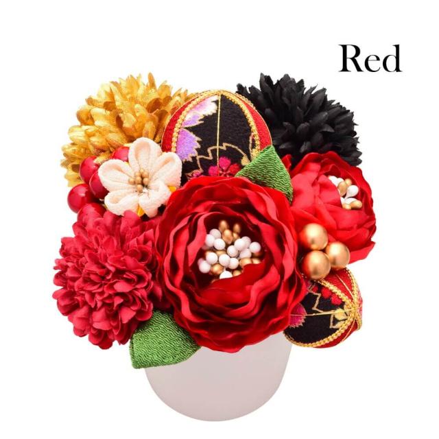 髪飾り 成人式 結婚式 振袖 ピンポンマム Uピン 白 赤 つまみ細工 ちりめん 飾り玉 前撮り 卒業式 和装 12点 着物