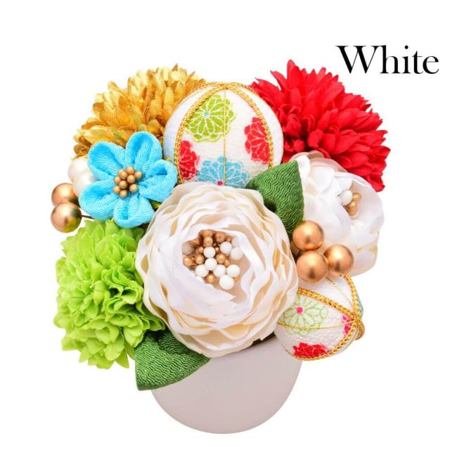 髪飾り 成人式 結婚式 振袖 ピンポンマム Uピン 白 赤 つまみ細工 ちりめん 前撮り 卒業式 着物 和装 12点 飾り玉