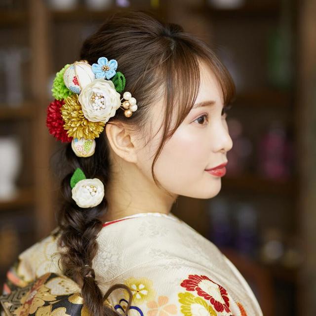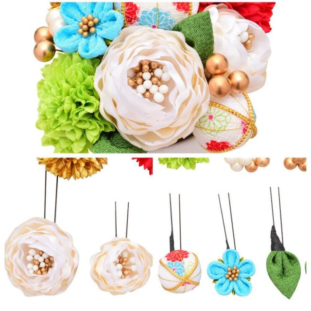 髪飾り 花かんざしセット ちりめん つまみ細工 成人式 卒業