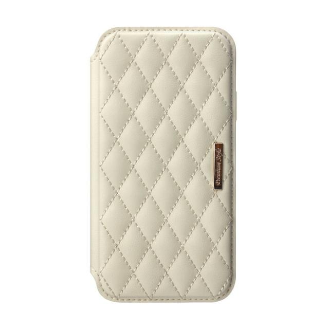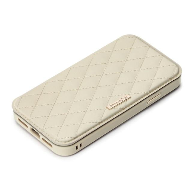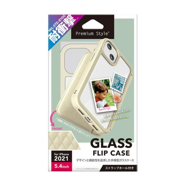 iPhone13mini ケース 5.4inch ガラスフリップケース キルティング調アイボリー アイフォン13mini カバー