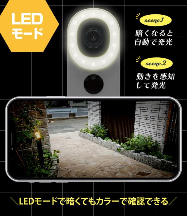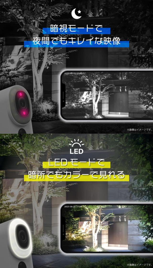 赤外線LEDオン時 0.02Lux/F2.0 → → 1Lux/F2.8