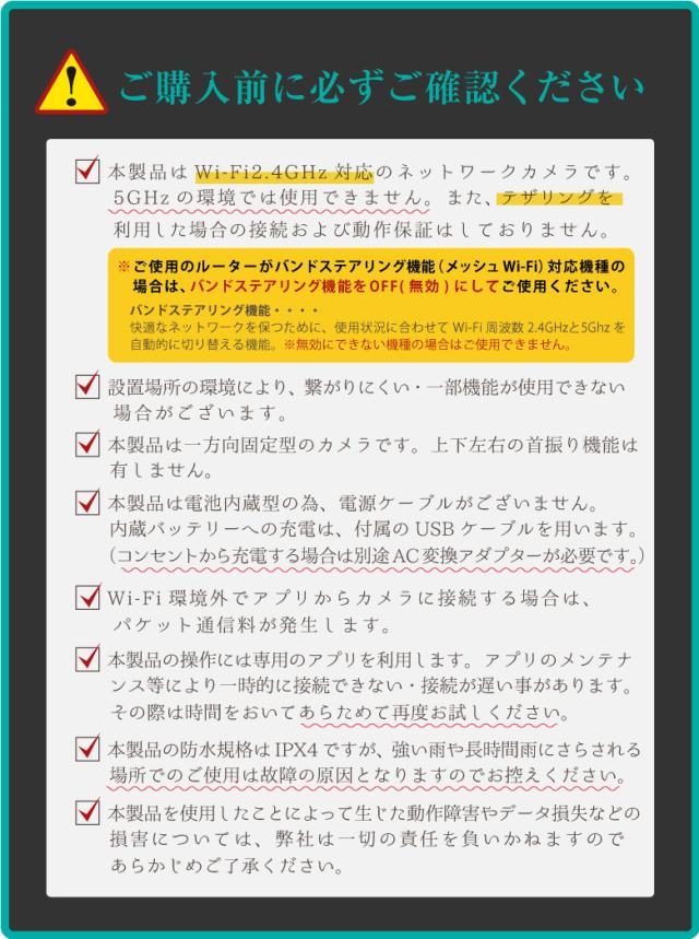 ※本製品のご使用にはWi-Fi環境【2.4GHz】が必要です。(5GHzは非対応)