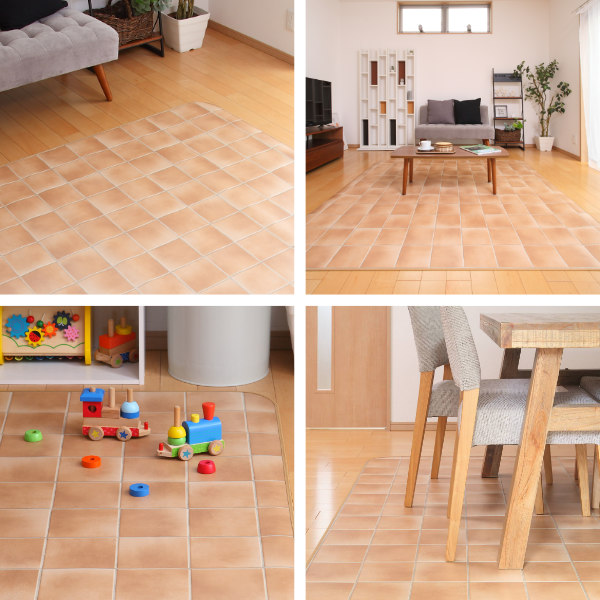 キズや汚れを守ってくれる万能なラグはリビングだけでなく、様々な場所でご使用頂けます。水や油が付きやすいリビングやダイニングスペース、子供部屋にピッタリです。