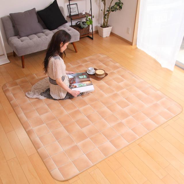 ラグ 182×300cm ラグマット テラコッタ 既製サイズ ( 撥水 拭ける タイル ダイニングラグマット フロアマット 撥水加工 抗菌 防カビ 防水 防炎 日本製 リビング ダイニング 子ども部屋 耐久性 )