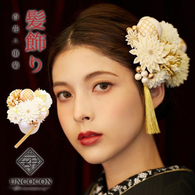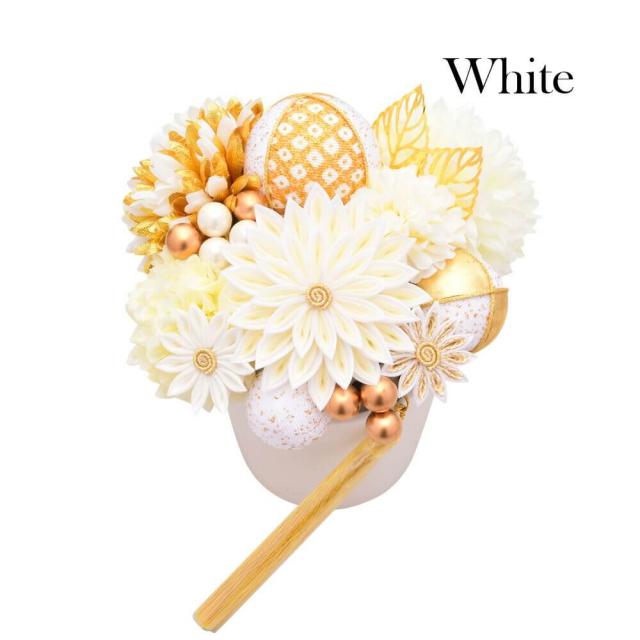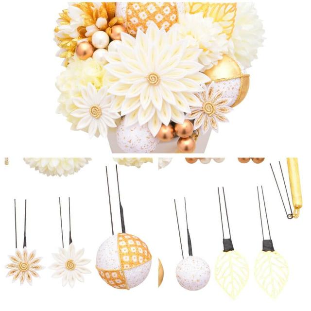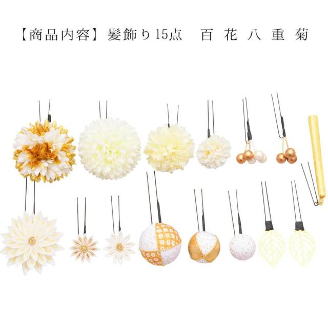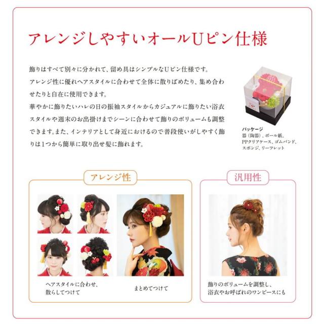 髪飾り 結婚式 振袖 ピンポンマム 成人式 Uピン 白 赤 つまみ細工 ちりめん 飾り玉 前撮り 卒業式 着物 和装 15点
