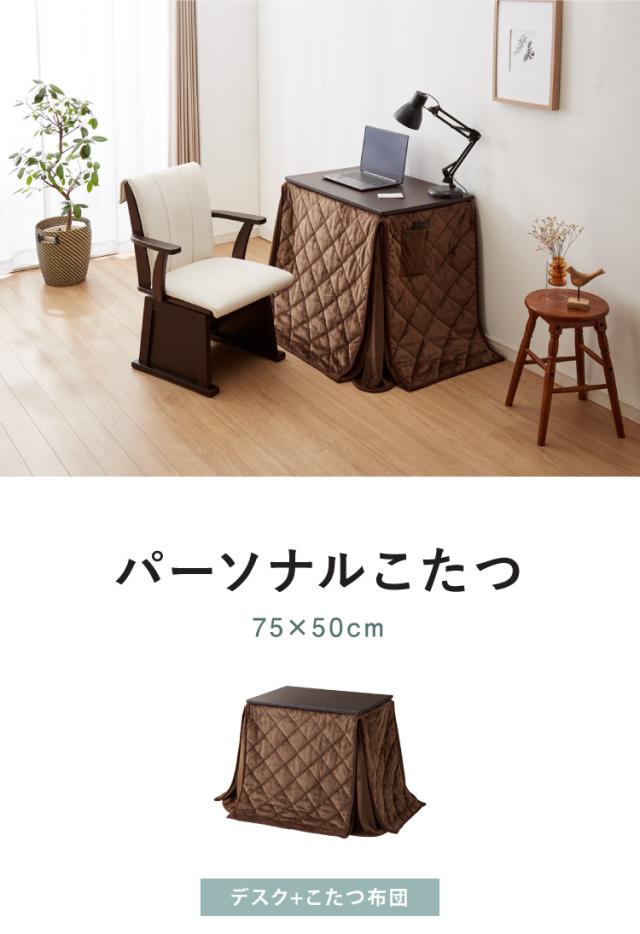 パーソナルこたつ 2点セット こたつデスク こたつ布団 75×50cm 500W 薄型ファンヒーター ハイタイプ デスクこたつ リモートワーク テレワーク 在宅勤務(代引不可)【送料無料】