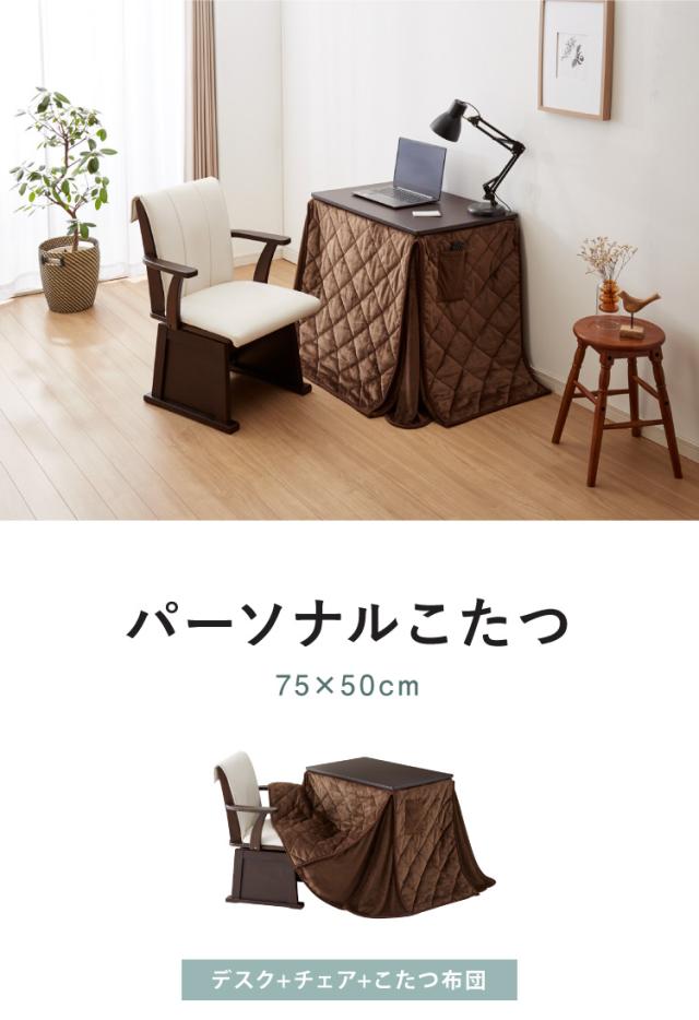 パーソナルこたつ 3点セット こたつデスク こたつ布団 こたつチェア 75×50cm 500W 薄型ファンヒーター ハイタイプ デスクこたつ リモートワーク テレワーク 在宅勤務(代引不可)【送料無料】