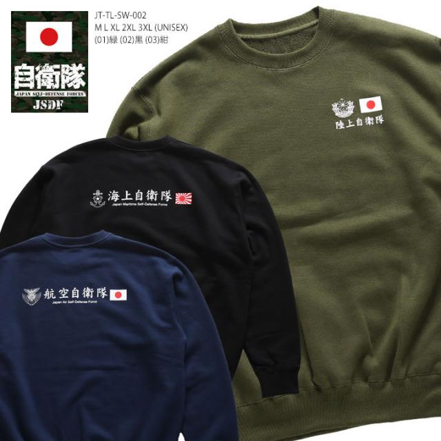 トレーナー 陸海空ロゴ(楷書) 自衛隊 グッズ 陸自 海自 空自 長袖 スウェット 裏パイル メンズ レディース 大きいサイズ 陸上自衛隊 海上自衛隊 航空自衛隊 おしゃれ かっこいい 旭日旗 防衛省 陸上 海上 航空 アーミー ミリタリー 服 21秋 新作 JT-TL-SW-002