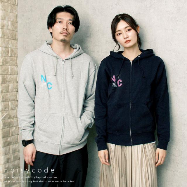 noisycode ジップアップパーカー ジップ パーカー レディース 綿100% メンズ 長袖 ブラウンロゴ n.c. カレッジロゴ オリジナル ジップパーカー フーディー フード スウェット トレーナー ジップアップ パーカ フード付きトレーナー デザイン ロゴ プリント 英字 カレッジ お