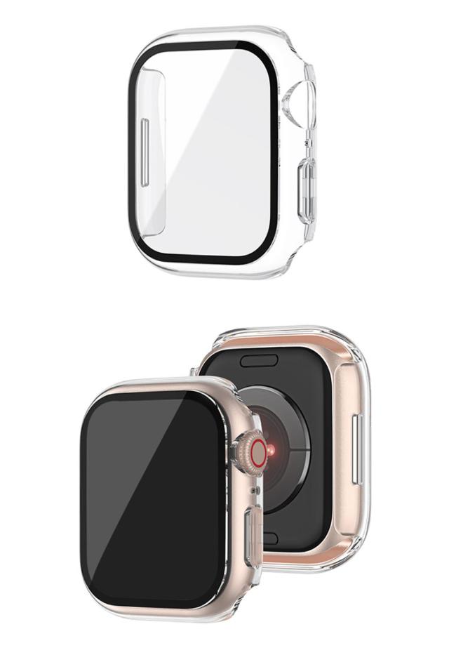 Apple Watch 9 Apple Watch 8 Apple Watch 7 アップルウォッチ9 アップルウォッチ8 アップルウォッチ7 41mm 45mm プラスチック + 強化ガラスの液晶保護カバー 一体型でサイド面のカバーがおしゃれなプラスチックケース appleウォッチ applewatch