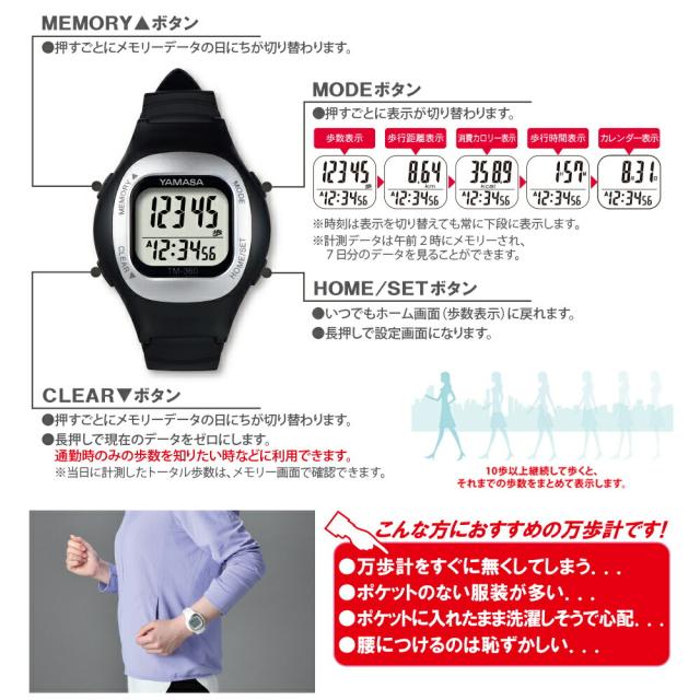 NEWウォッチ万歩計 TM-360 | 万歩計 歩数計 ウォーキング 散歩 健康 ダイエット 腕時計