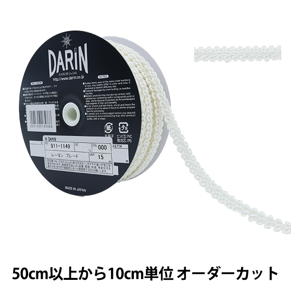 【数量5から】 手芸ブレード 『レーヨンブレード 幅約1cm ホワイト 911-1149-000』