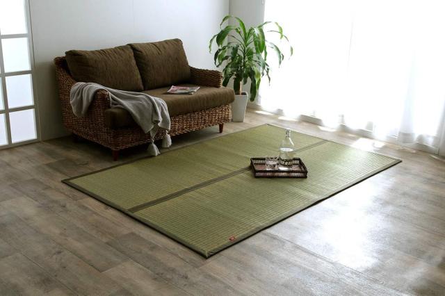 イケヒコ い草 ラグ カーペット マット 長方形 DX沖縄ビーグ カーキ 約128×200cm 日本製 裏付 ヘリ:デニム生地使用 #1718760
