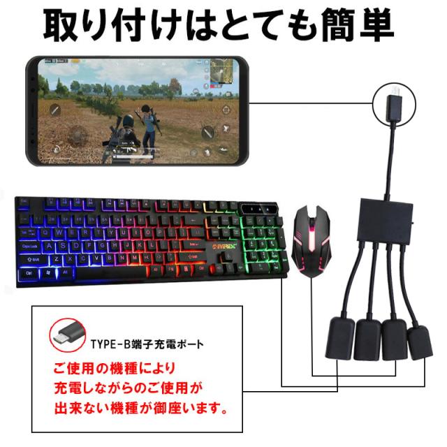 | 対応の3ポートのUSBハブを利用すれば、ひと挿しでアナタのスマホが超小型PCに大変身するのです! OTG対応Android端末に複数のUSB周辺機器接続することが出来きます。 ※供給側の端末はAndroid 4.0以降でUSBホスト機能に対応している必要があります。 ※接続する機種や状態によってはご利用いただけない場合があります。 ※同時に2つのUSBメモリを接続できません。 ※MicroUSBメスはスマホへの充電ではなく、USBマウス・USBメモリ・USBキーボードへの給電専用となります。 |