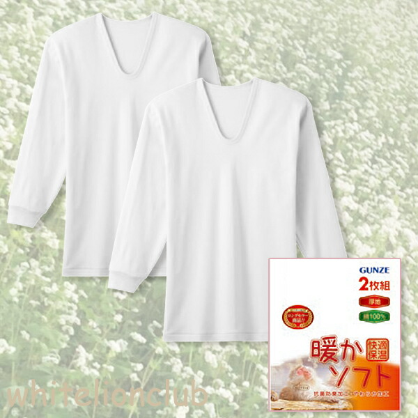 グンゼ 保温平台 長袖 U首 暖かソフト 2枚組 抗菌防臭 本体綿100% S/M/L/LL | やわらか加工 メンズ 秋冬 秋 冬 綿 シャツ インナー 下着 肌着 RP6510A GUNZE