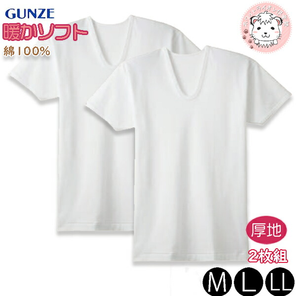 グンゼ 保温平台 半袖 U首 暖かソフト 2枚組 抗菌防臭 本体綿100% M/L/LL | やわらか加工 メンズ 秋冬 秋 冬 綿 シャツ インナー 下着 肌着 RP6516A GUNZE