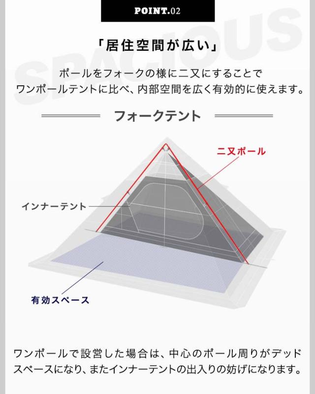 【訳ありアウトレット】FIELDOOR フォークテント280プラス T/C 280cm 前室あり 二又ポール 難燃 TC ポリコットン 一人用 2人用 ドームテント テント フルクローズテント ティピーテント ソロキャンプ ツーリング フライシート アウトドア 1年保証 送料無料