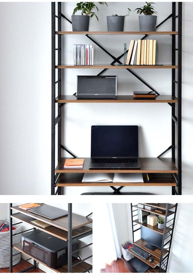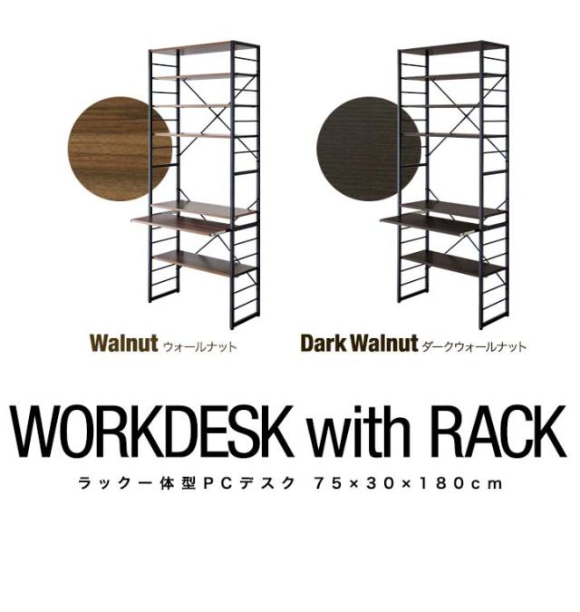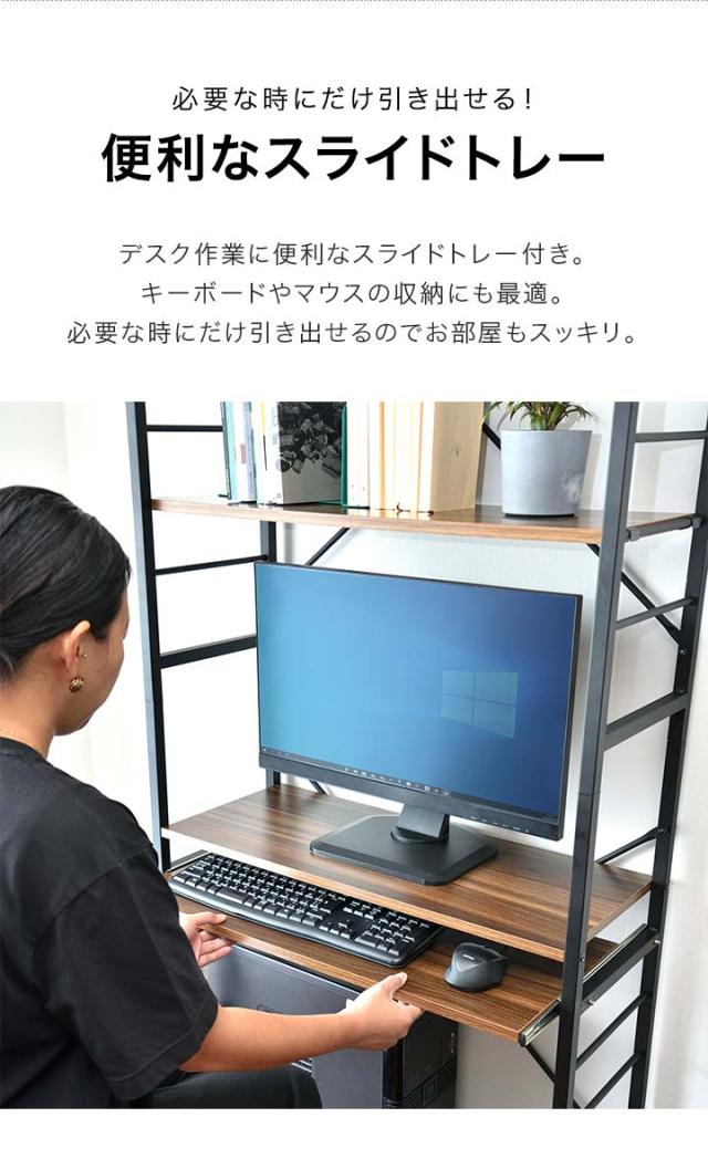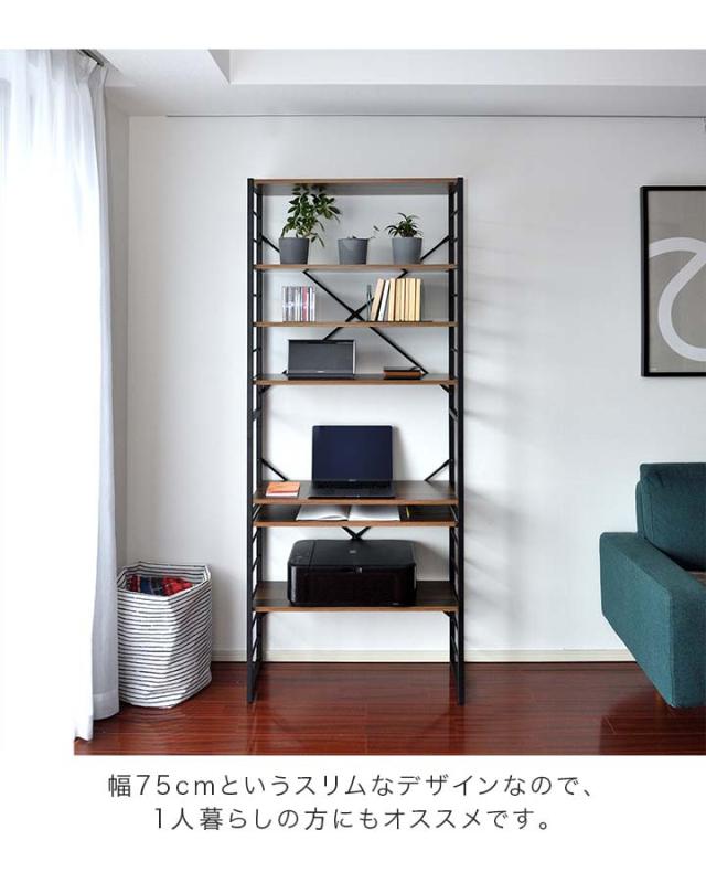 パソコンデスク 幅75cm スリム ハイタイプ 収納ラック付き 棚付き 本棚 ハイデスク ラック一体型 PCデスク ワークデスク オフィスデスク パソコンラック 作業机 勉強机 PC机 パソコン机 机 デスク 壁面収納 在宅ワーク テレワーク 新生活 送料無料