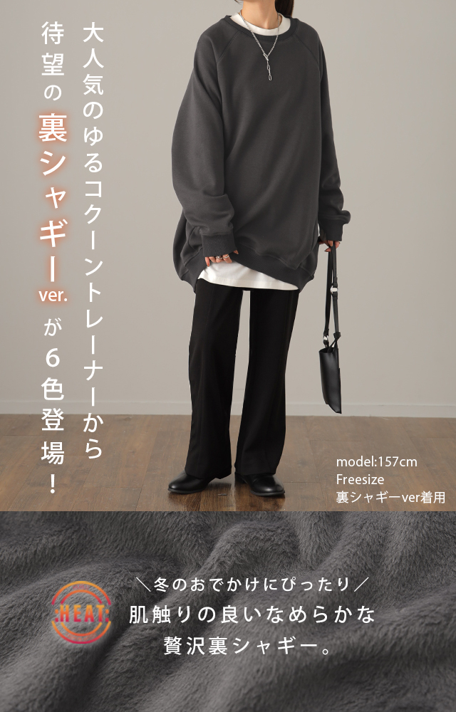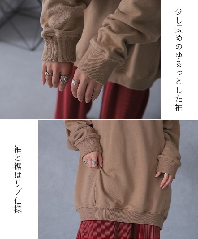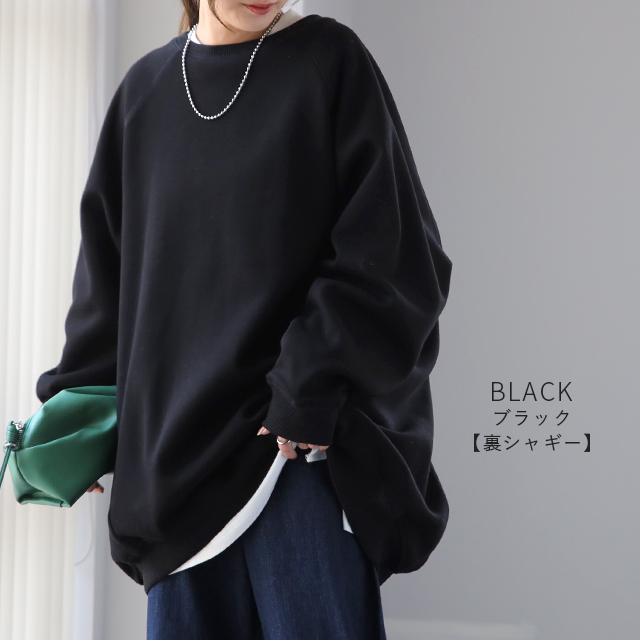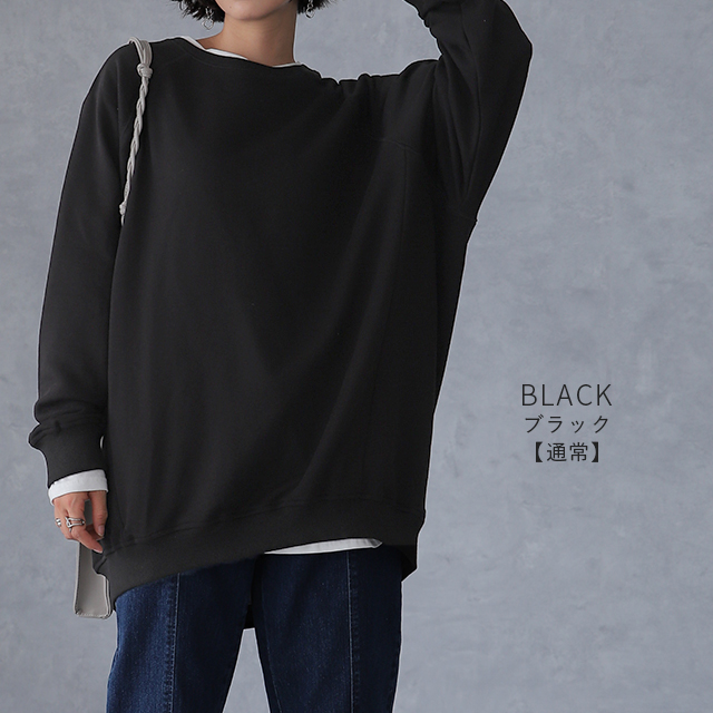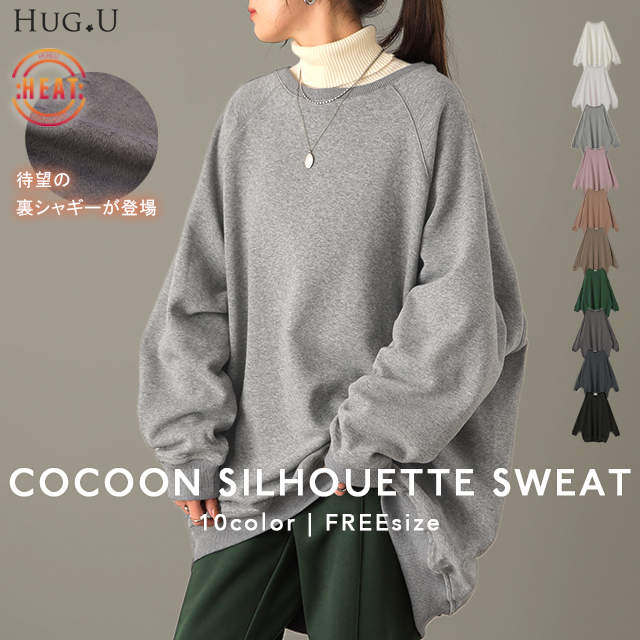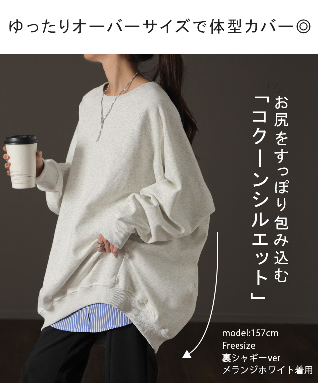 ゆる。 スウェット コクーン トレーナー レディース スエット ビッグ トップス 大きいサイズ 無地 ドルマン ドロップショルダー コクーン ラグラン 体型カバー リブ お尻が隠れる チュニック ゆったり レイヤード 長袖 黒 ルーズ 冬 秋 HUG.U 秋新作