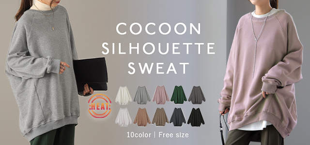 コクーンシルエットで愛らしく仕上げたカジュアルフェミニンなトレーナーです。