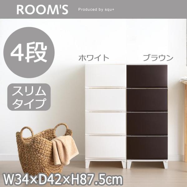 サンカ ROOM’S ルームスシェード 4段チェスト (組立式) RSD-S344 BR・ブラウン